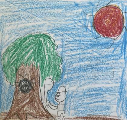 イラストの作者は6年生です。「虫捕り」をテーマにイラストを描いてくれました。どんな昆虫に出会えたかな。