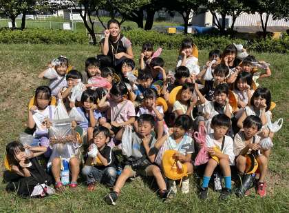 1年2組の秋を見つけよう探検隊の記念写真です。