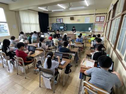 読書タイム前の3年生の洋室のようすです。連絡帳や荷物の整理が澄んだ子から、クロムブックでタイピングの練習をしていました。水分はやく正確に文字打ちができるようになりましたね。さすが3年生です!