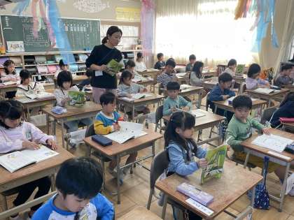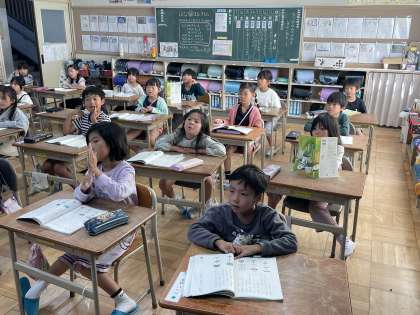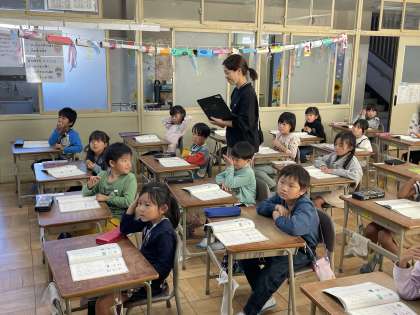 1年3組の国語の授業のようすです。漢字がどのように作られているか学び、動画を見て確認しました。漢字には、そのものを表すようすから変化してできたものがあることがわかりましたね。