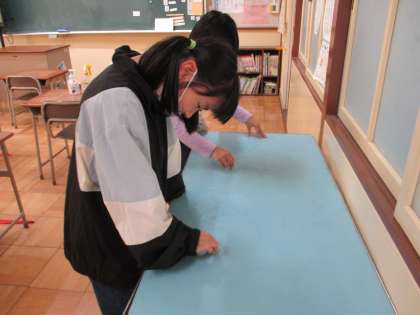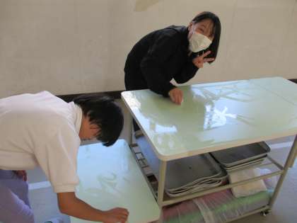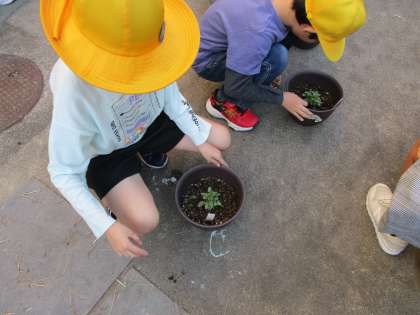 今日のひまわり組の委員会の活動の様子です。給食委員会では、配ぜん台をきれいにしているところです。環境委員会では、植木鉢の小さな草を抜いているところです。みんな自分の仕事に集中して取り組むことができました。