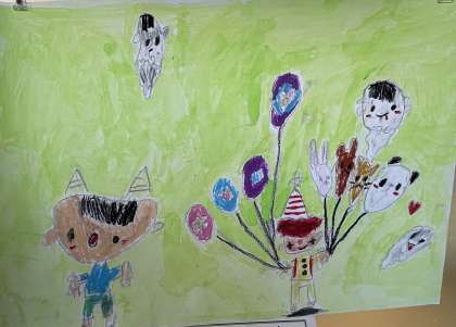 12月27日(金) 1年ウェブ展覧会「おはなしだいすき」 公開日 2024/12/27 更新日 2024/12/27 1年 1年生の図工の作品を紹介します。「アブラカタブレット」のおはなしをきいて、おもいうかべたことを、えにあらわしました!