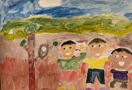 5年生の図工の作品「読書感想画」を紹介します。題は「アオナギの巣立つ森では」です。