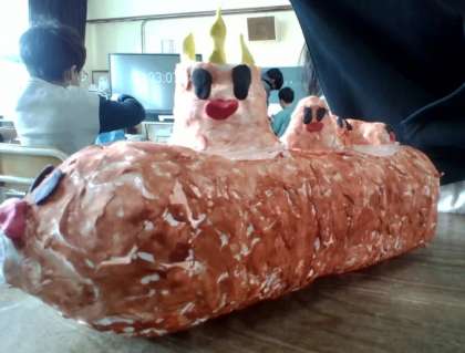 3年生の立体作品「空きようきのへんしん」の一部を紹介します。クロムブックのソフトを使って、自分で作品の写真を撮りましたよ!