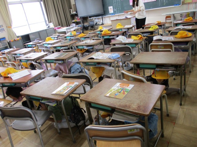実際に地震が来たらどのように身を守り、避難するとよいのかを教室で学習し、避難経路を確認しました。
