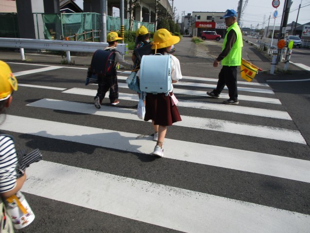 交差点には見守りボランティアの方や保護者の方が立ってくださっていました。