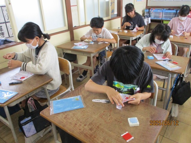 まずは、針に糸を通すことが難しく、先生や友達に教えてもらっている子もいました。