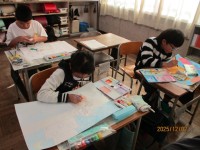 算数の時間に長方形と正方形を組み合わせた図形の面積を求めました。まずは線を引いて...