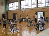 車いす体験では車いすに乗って簡単な段差をあがる体験をしました。マットの上に車い...