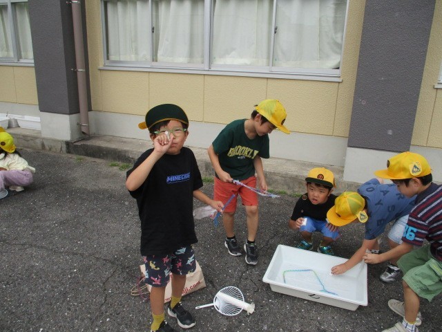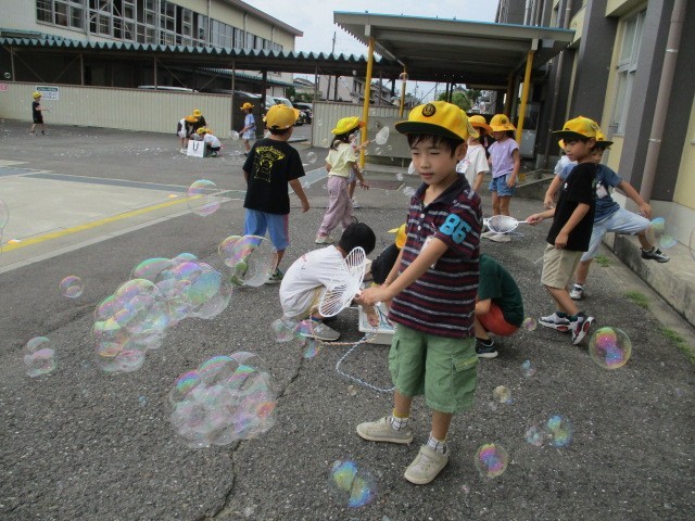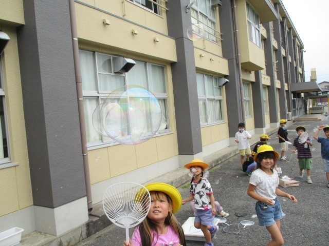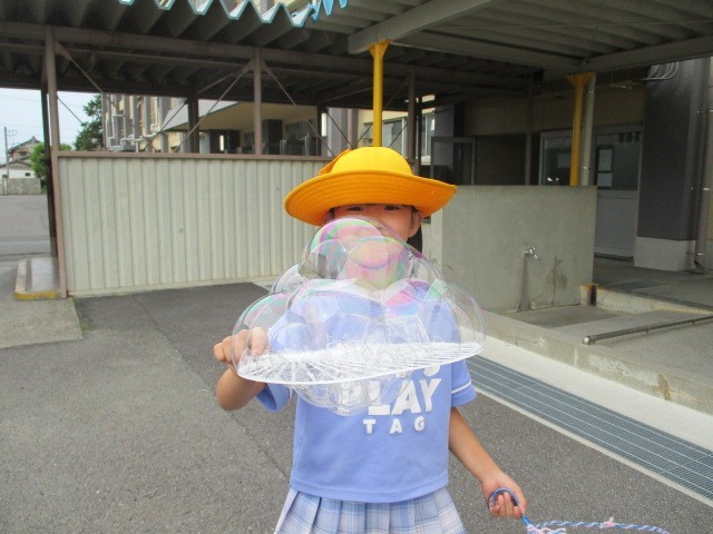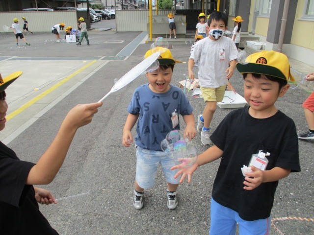 しゃぼんだまを作って遊びました。うまくつくれたものもあれば、うまくいかなかったものもありましたが、それぞれ思い思いに楽しんでいました。