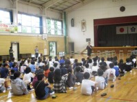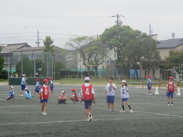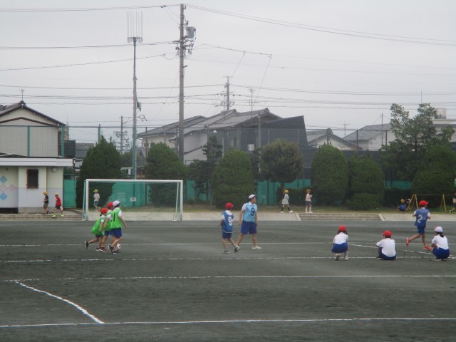 サッカーの学習です。ゲームに向けてチームで相談して役割を決めます。