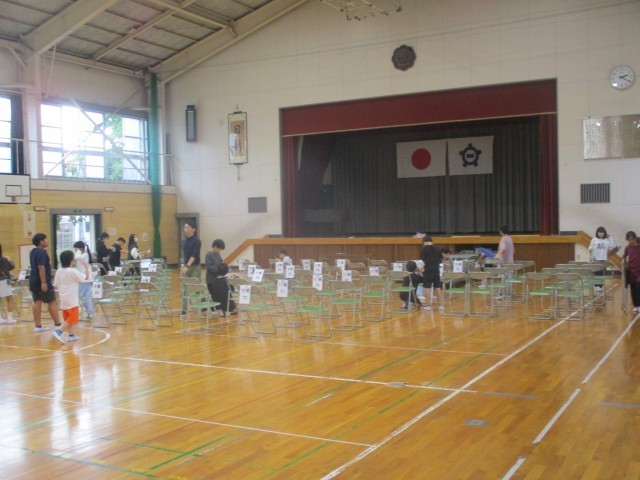 5年生の児童が積極的に仕事を見つけて会場設営をしました。