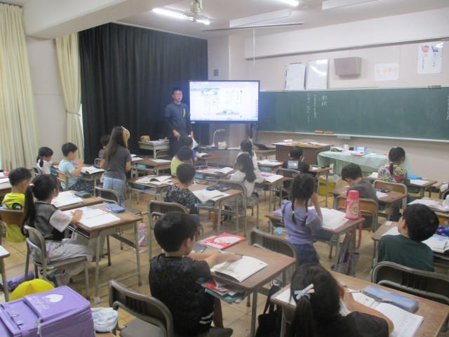 国語の時間です。くじらぐもにとびのろうとする気持ちをかんがえました。