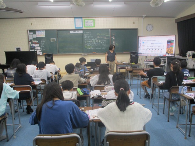 音楽と図画工作の授業の様子です。昨日の就学時健康診断では準備や片づけを立派に行いました。