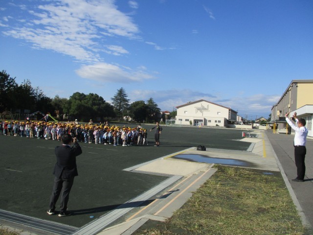 抜けるような晴天の下、1年生が校外学習へ出発しました。