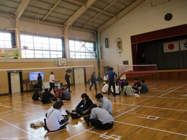 本日体育館にて6年生のソフトバレーボールの授業方法について先生たちで話し合いました。