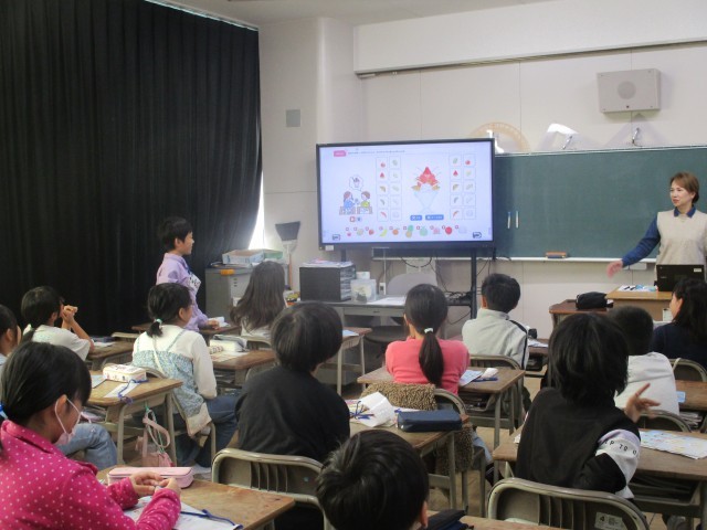 英語でパフェに入れたいものを紹介し、オリジナルパフェを作ります。