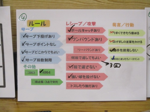 相手チームと相談し、自分たちでルールを決定し、ゲームをしました。