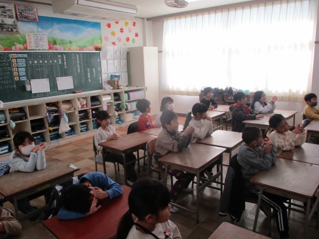 音楽の授業です。手拍子でリズムを作りました。