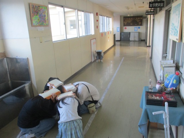急な訓練放送にもかかわらず、すぐに自分を守る姿勢をとることができました。