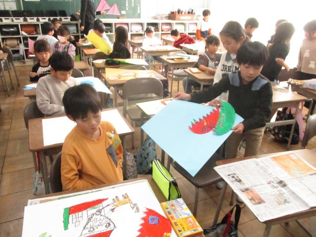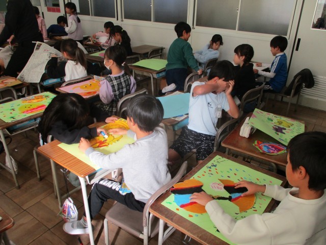 色とりどりのたまごを画用紙にどうやってはるのか考えました。