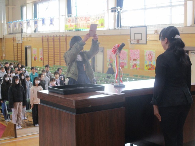 3月18日(水)6年生修了式・記念品授与式【奥小日記】