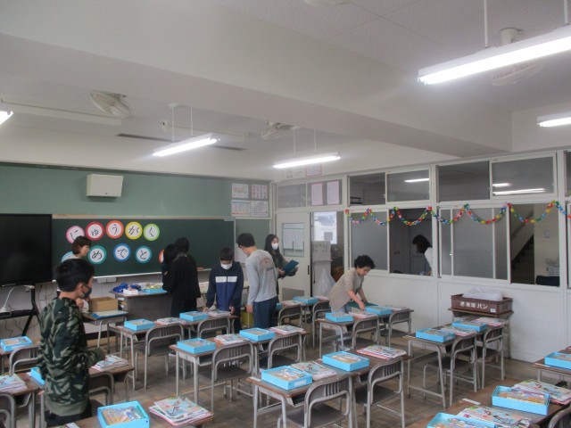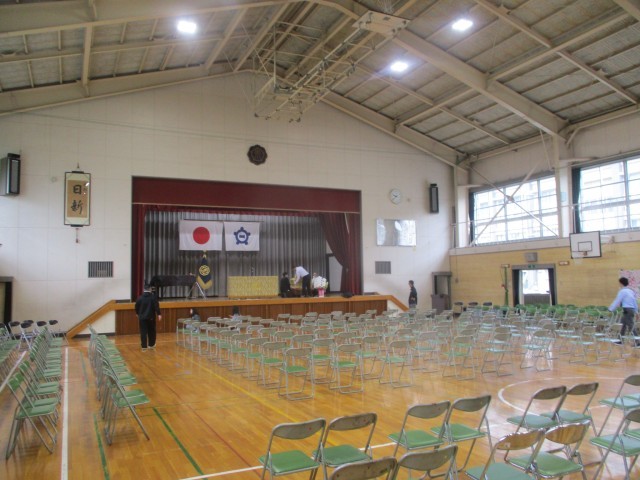 新6年生が登校し、明日の入学式の準備を手伝ってくれました。