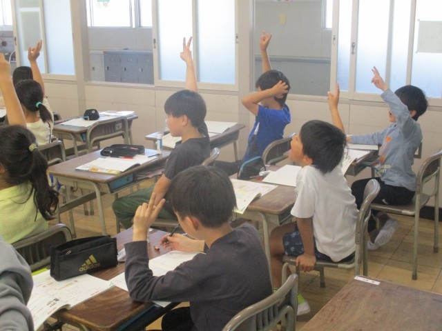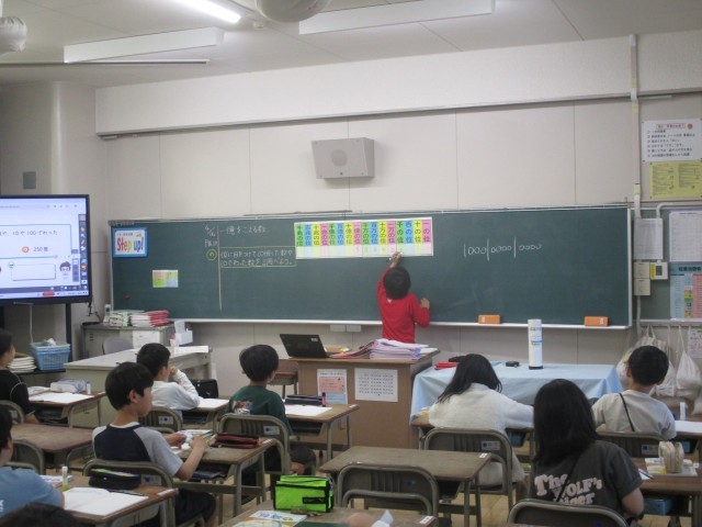 算数の授業の様子です。大きな数を位に目をつけて考えます。