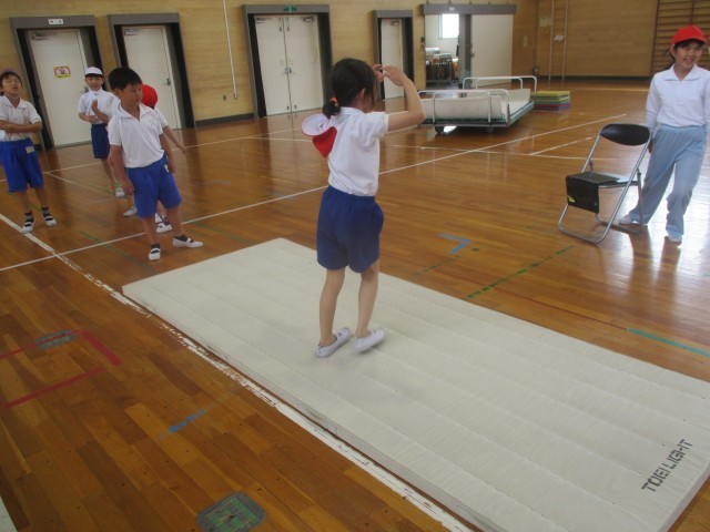 マット運動の後ろ回りの練習をしました。