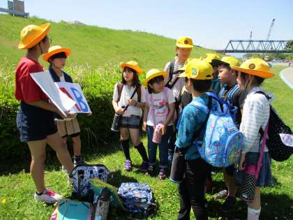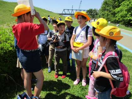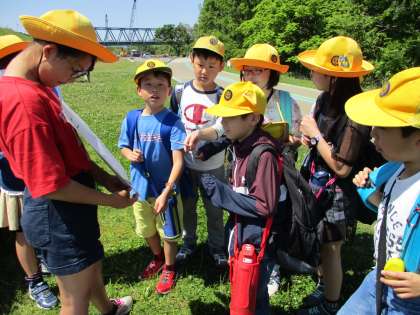 今日は5年生とのふれあい遠足、前半は5年生が考えたウォークラリーで楽しく活動しました。それぞれのポイントで工夫された問題が出され、班で協力し合いながら、問題をクリアーしていきました。