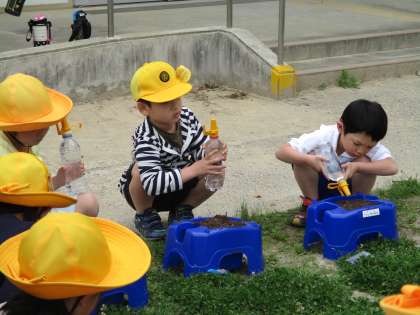 生活科であさがおの種の観察をした後に、種まきをしました。