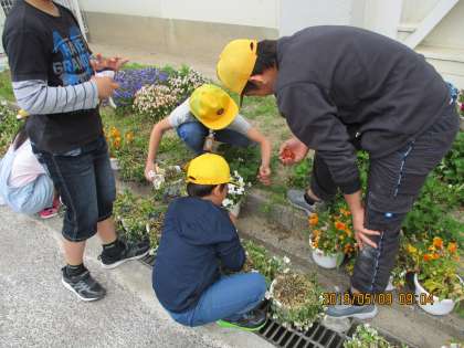 2日間かけて日新花壇を整備しました。いちご狩りを楽しんでから、