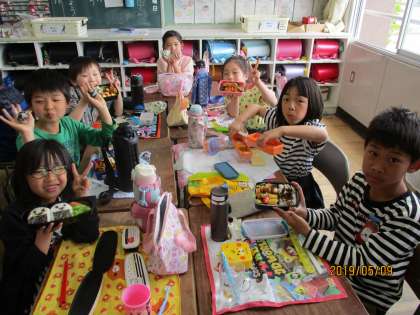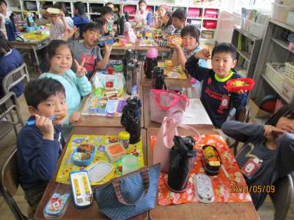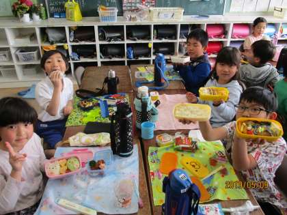 遠足の次の日は、学校でお弁当を食べました。2日続けてのお弁当の用意。おうちの方にはご協力していただきありがとうございます。