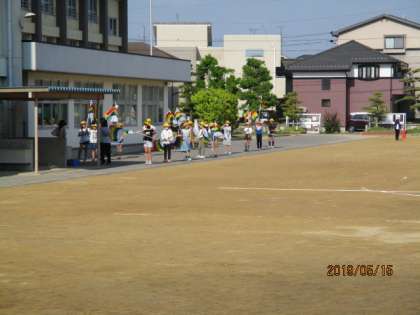 運動会当日、発表があるカラーガードやマーチングバンド、応援団はそれぞれ本番に向け真剣にれんしゅうしていました。
