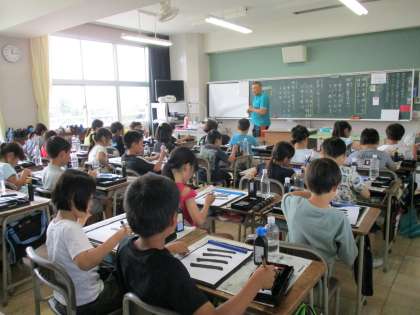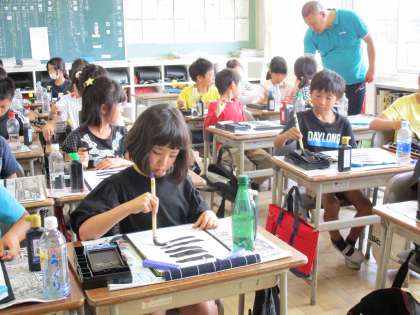 書写では毛筆の学習が始まり、張り切って練習に取り組んでいます。