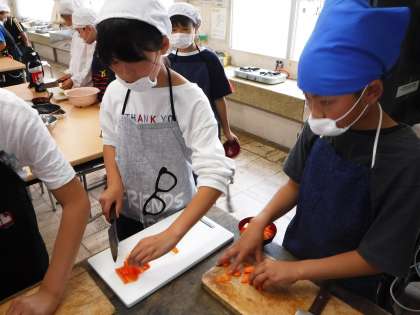 本日は2組が調理実習を行いました。人参がうまく切れたよ、人によって大きさが違っていためるのに苦労したよ、家族につくってあげよう。など、温かい感想がたくさんありました。味付けには気を付けて作ってあげてね。