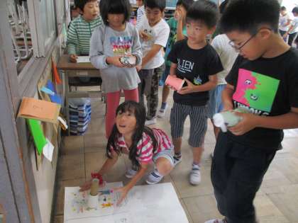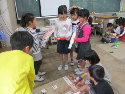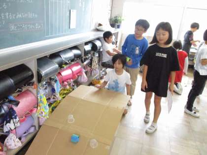 1年生を招待するために一生懸命考えて、楽しいおもちゃともっと楽しく遊ぶための仕組みができました。
