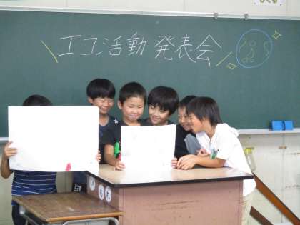 4組で、エコ活動の発表を行いました。