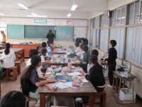 英語の授業では、職業の英語の言い方を復習したり、英語で書かれたヒントからだれのことかをあてるゲームをしたりしました。