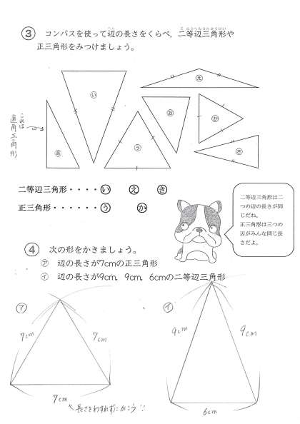 図形はていねいに、正確にかくことが大切です。コンパスを使っていろいろなもようもかいてみましょう。