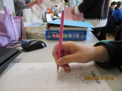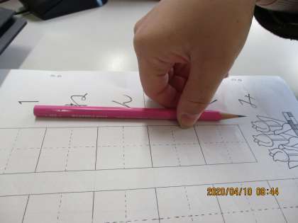 きょうは、えんぴつのもちかたの れんしゅうです。