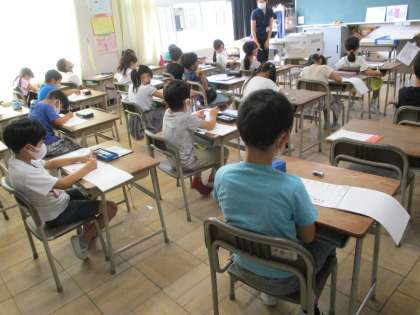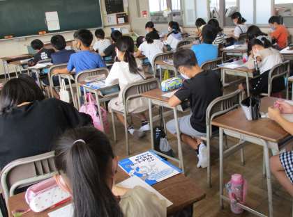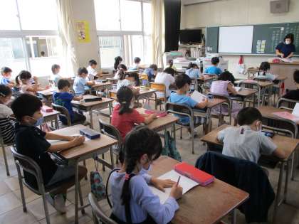 朝の時間、全校一斉に国語と算数のドリル学習をします。