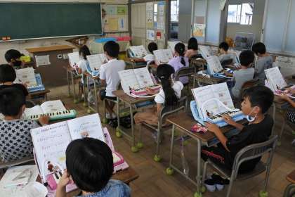 そこで、今日はひさしぶりにけんばんハーモニカの演奏をしました。