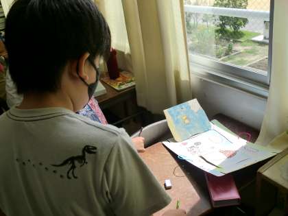 先日完成した「ひらいてひろがるふしぎなせかい」の作品の鑑賞を行いました。友だちは、扉の中にどんな世界を作っているんだろう?それぞれの発想を楽しみながら、鑑賞しました。