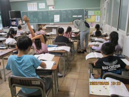 練習問題の答え合わせでは、みんなで声をそろえて計算を確認しました。