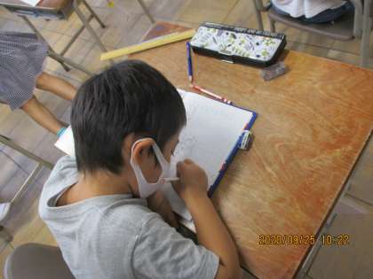 子どもたちは、自分なりの言葉ですらすら書いていました。