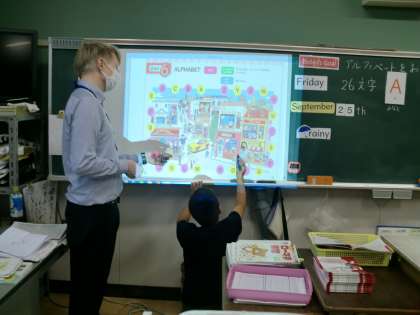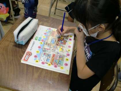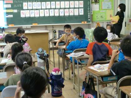 英語では、アルファベットの学習をしました。絵の中に隠れているアルファベットを探し発表しました。26個のアルファベットを一生懸命探し、積極的に発表していました。