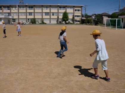 理科は、太陽の学習に入りました。かげについて考えるために、ちょうど国語で学習している「かげおくり」と、「かげふみ」をしました。「どこにかげがある?」「どこに太陽がある?」と確認しながら、楽しく遊びました。