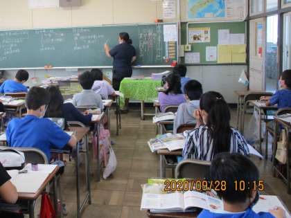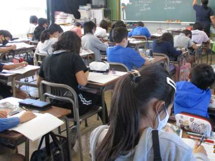 子どもたちのノートには真ん中に赤い線がひいてあります。