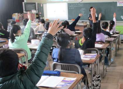 「立てる」「掛ける」「引く」「おろす」の言葉を使って子どもたちが計算を説明します。